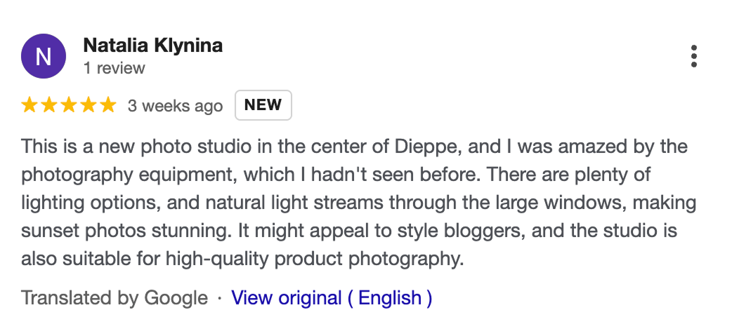 Spacious, modern studio in Dieppe — easy to reach, with props for creativity.